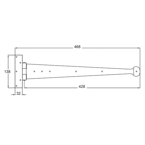 - Hinge Length: 468mm (18"), Hinge Arm: 428mm, Thumb Latch Height: 205mm, Latch Bar Length: 178mm