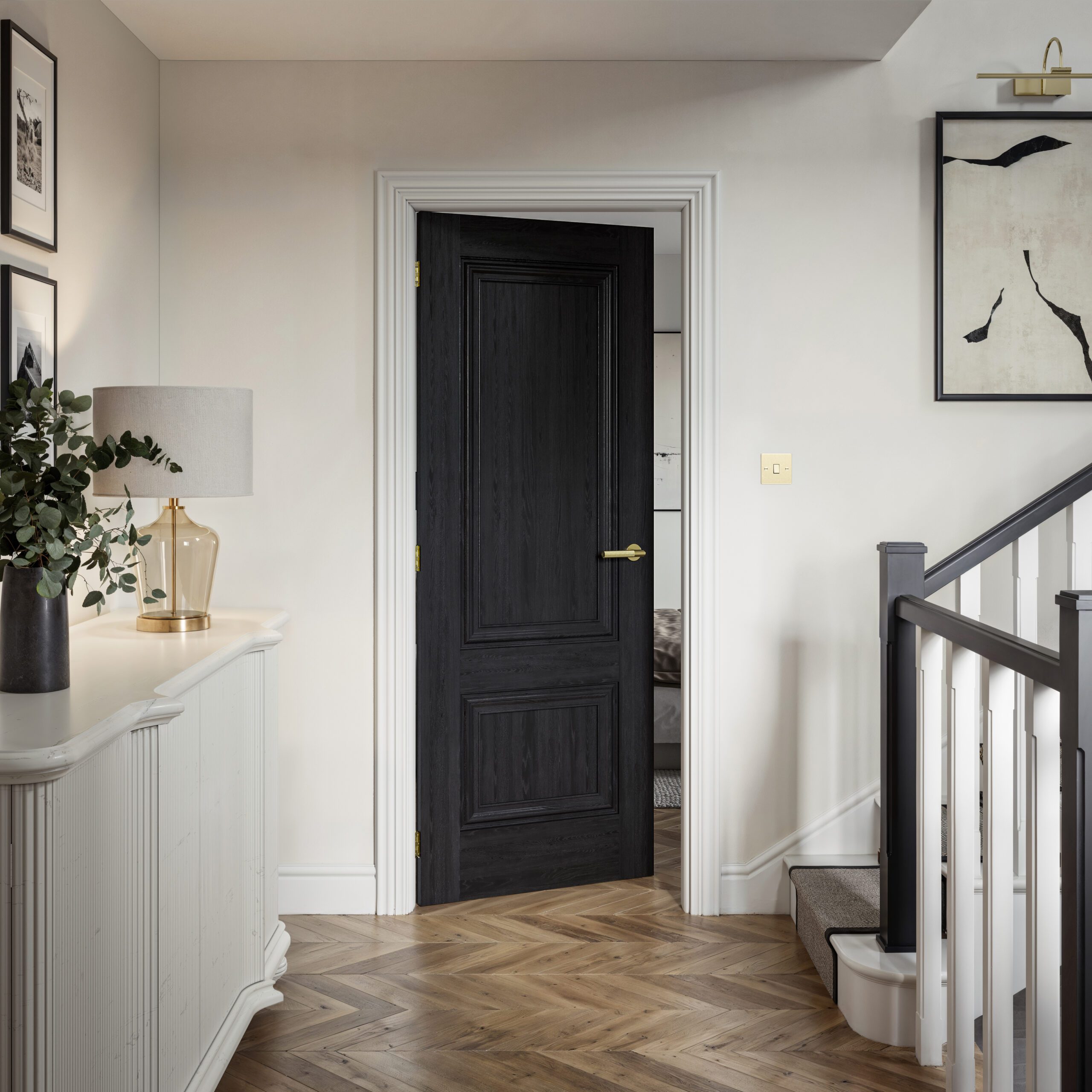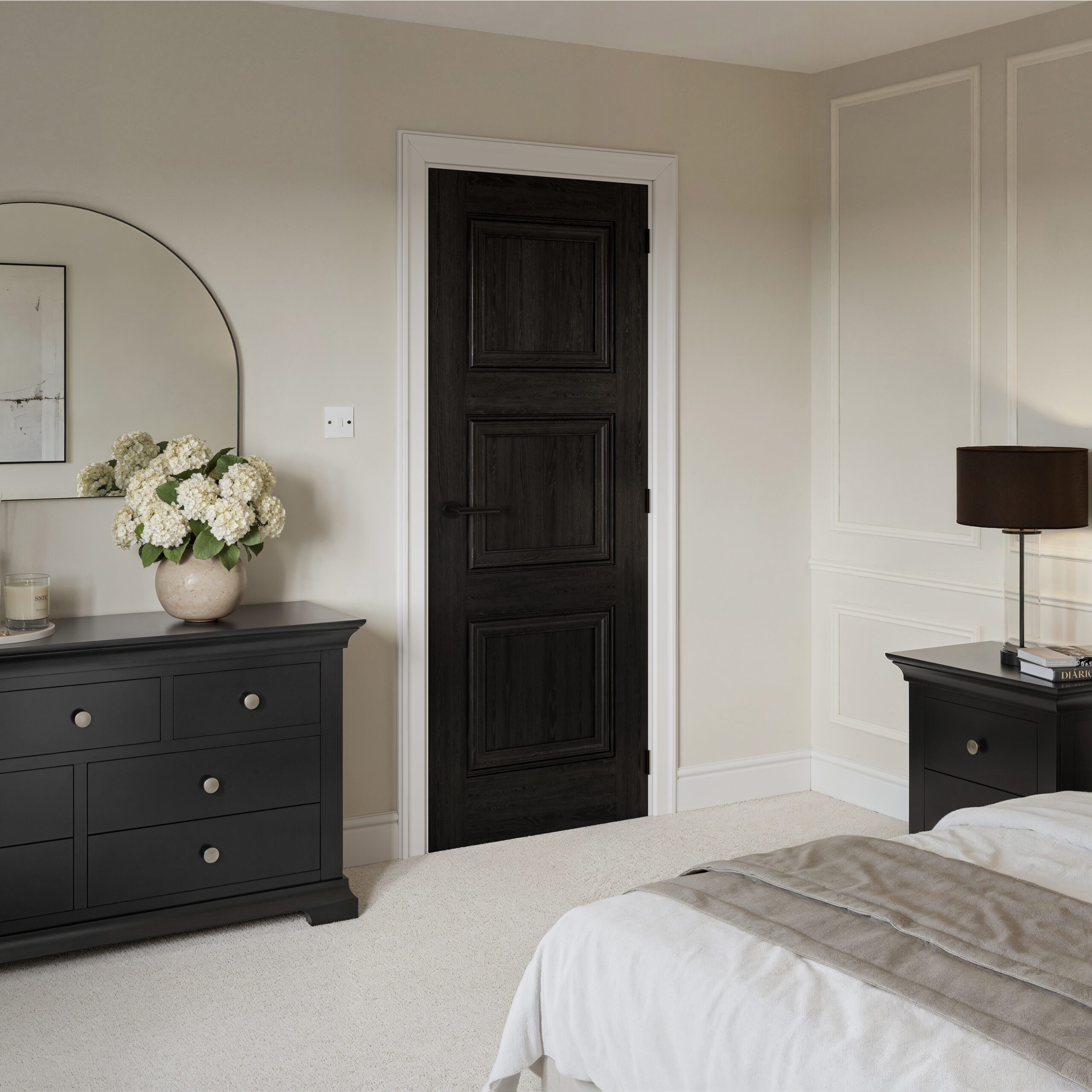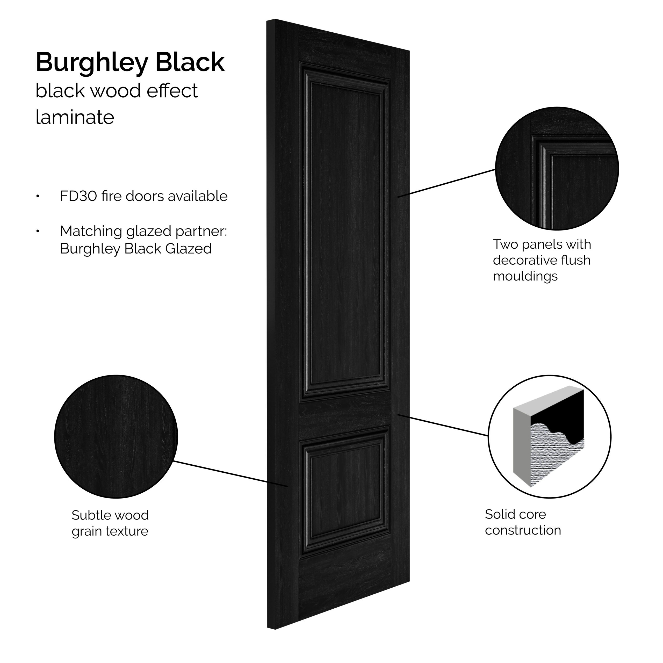 - Classic black panelled internal door