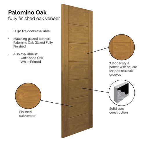 - 7 ladder style panels with square cut 'U' shaped real oak grooves